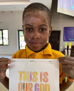 Jeremiah is 5 years old. He was very quiet and reserved for the first day of camp but opened up as the days progressed. He listened intently to the skits and lessons and during playtime, he was always finding some way to make the other boys in our group laugh. The three characteristics we chose to describe Jeremiah during camp were attentive, intelligent, and obedient. Some fun facts about Jeremiah: